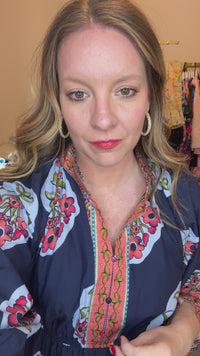 - Stunning floral print with navy background