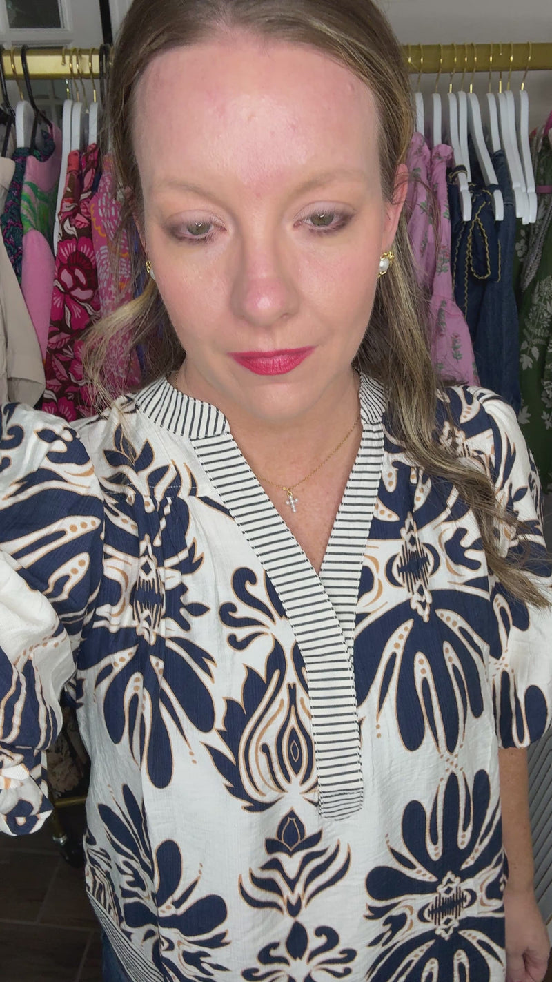 The Sweet Sails Navy Top combines timeless nautical style with expert tailoring for a refined yet versatile look. Crafted from high-quality fabric, this top offers both comfort and durability, making it ideal for casual outings or layered ensembles. Its rich navy hue pairs effortlessly with various wardrobe staples, delivering a polished finish that holds up through seasons. Designed with attention to detail, the Sweet Sail Navy Top is a reliable choice for those seeking classic elegance blended with everyday practicality.