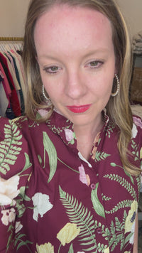 Embrace effortless charm with The Garden Grace Maroon Blouse, featuring a rich wine hue dotted with delicate blush, cream, and sage florals that brighten any moment. Its button-front and gentle puff sleeves add a playful touch of structure while keeping the fit light and flattering. Whether at work, worship, or weekend adventures, this blouse flows with your every move, a reminder that grace is always in style!